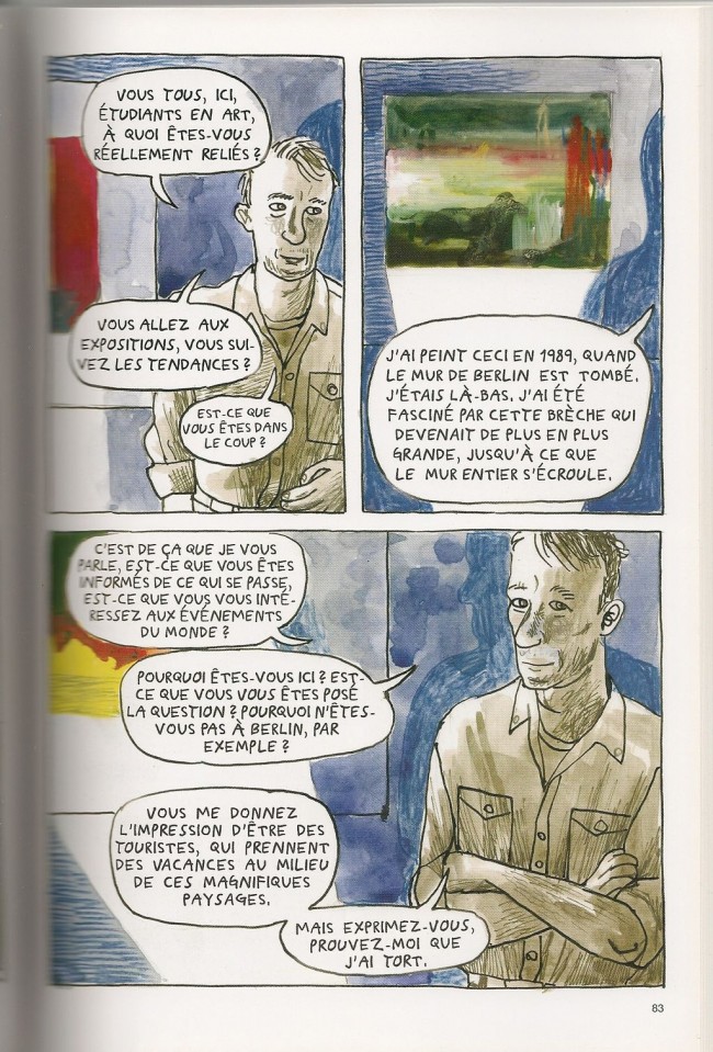 Les planches en aquarelle m'ont un peu rebuté au début. Puis, petit à petit, je suis rentré dans le récit auto-biographique d'une artiste finlandaise qui a grandi en Suède. Elle est à la fois peintre et auteure de bande dessinée. La plupart de ces albums ont d'ailleurs une dimension autobiographique. Son travail a été primé à deux reprises au festival de Kemi en Finlande. C'est toujours intéressant de voir le travail d'auteurs de pays scandinaves. Il y a toujours une autre approche, différente donc originale. Hélène n'a pas un physique très séduisant car elle a un peu de poids. Cependant, cela attire toujours certains hommes. Pour autant, elle sera hésitante sur ses orientations sexuelles. Elle connaîtra également de nombreux doutes quant à sa vocation artistique, tiraillée entre les voies contradictoires de la peinture de paysage et de l'art contemporain. Bref, elle aura des difficultés à trouver son identité. Cela sera pour elle une année assez riche en enseignements. Cette tranche de vie sera assez prenante à lire malgré l'austérité du graphisme. Cela fait penser au Journal de Fabrice Néaud dans la démarche. L'auteure dévide avec acuité le fil des interrogations d'une jeune femme moderne en quête d'elle-même.BDGest 2014 - Tous droits réservés