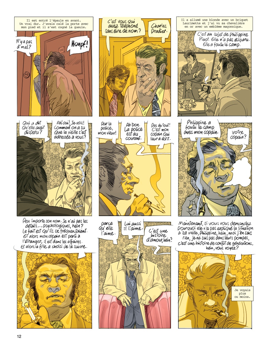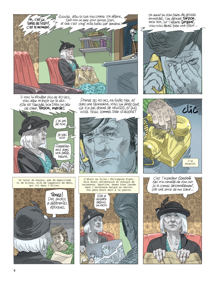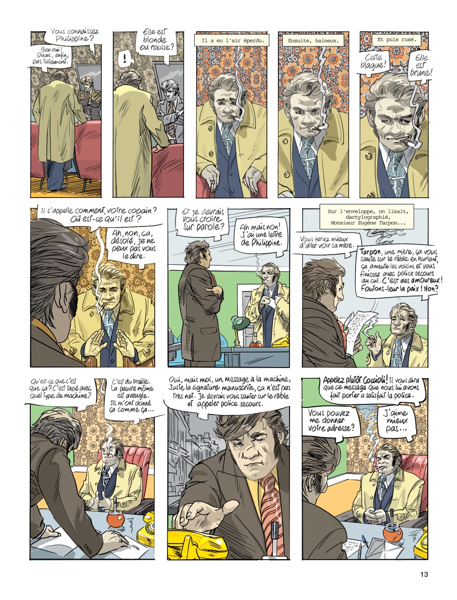 Résumé: France, 1975. Eugène Tarpon, détective privé de son état, accepte de rechercher une jeune aveugle disparue, Philippine, à la demande de Marthe, la mère de cette dernière. Lorsque Philippine lui écrit - en braille - qu'elle vit heureuse, Tarpon est prêt à lâcher l'affaire. Mais quand Marthe est assassinée en pleine gare Saint-Lazare, le détective décide d'aller fouiner un peu plus profondément. Au risque de mettre les doigts dans une très vilaine affaire où vont s'entremêler passé fasciste de certains Français, relations troubles entre police et extrême droite ou encore dérives sectaires...