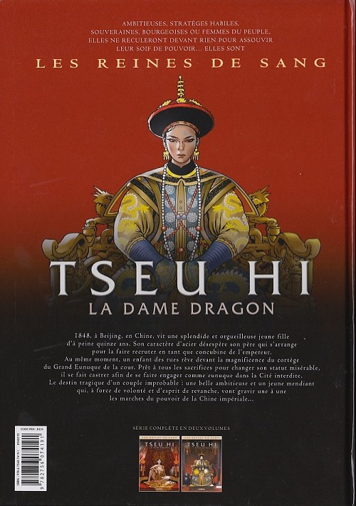 Une série honnête qui divertit et permet de passer un bon moment en compagnie de Dame Dragon, l'une des plus belles garces de l'histoire (pardon votre majesté) et de son eunuque impérial préféré qui n'a pas grand chose à lui envier. Des dessins tout à fait plaisants pour un scénario bien emmener (peut-être un peu rapide) qui retracent l'épopée de cette reine de sang (made in china) qui a tout sacrifier pour s'emparer du pouvoir et le préserver.BDGest 2014 - Tous droits réservés