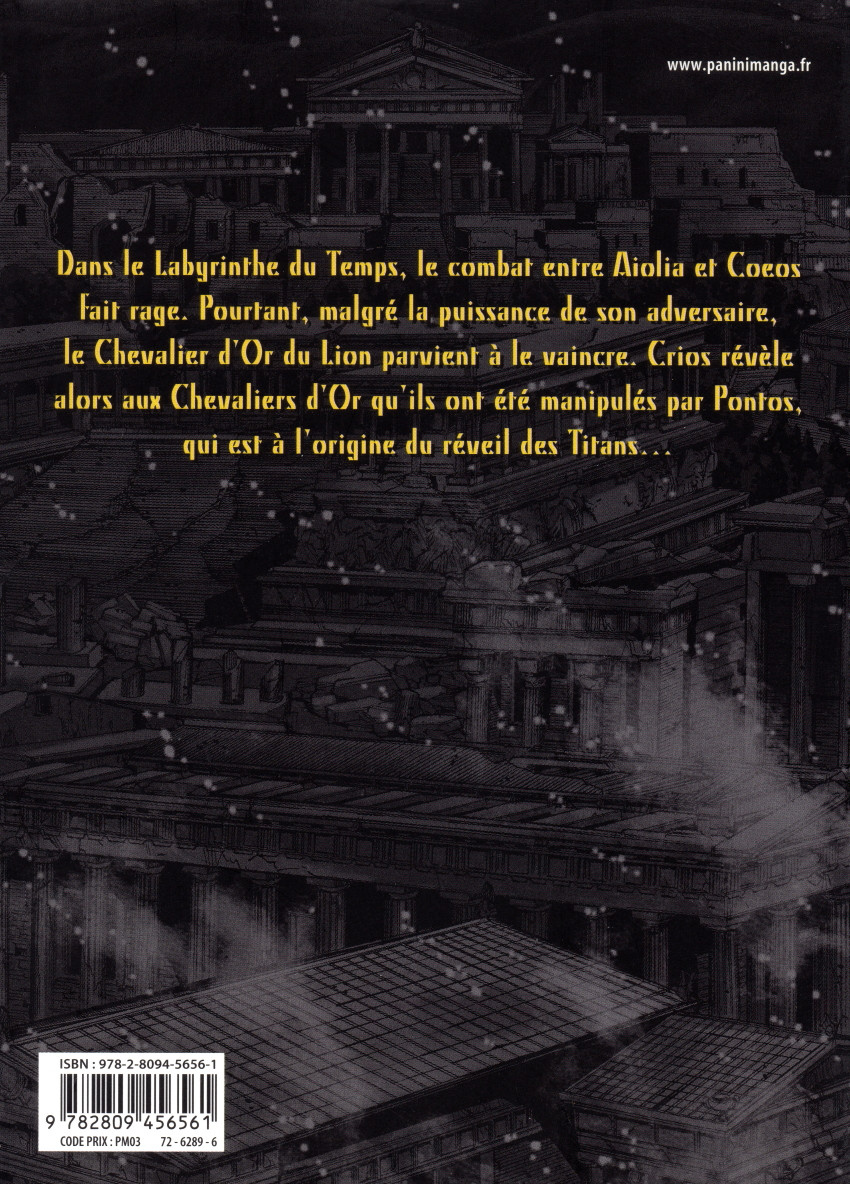 Résumé: Alors que Pontos continue de manipuler son monde, le combat entre Aiolia et Coeos se poursuit dans le Labyrinthe du Temps. Pourtant, malgré la bravoure de son adversaire, le chevalier du Lion parvient à vaincre le Titan. Avant de succomber, ce dernier lui dévoile un secret qui pourrait tout changer...