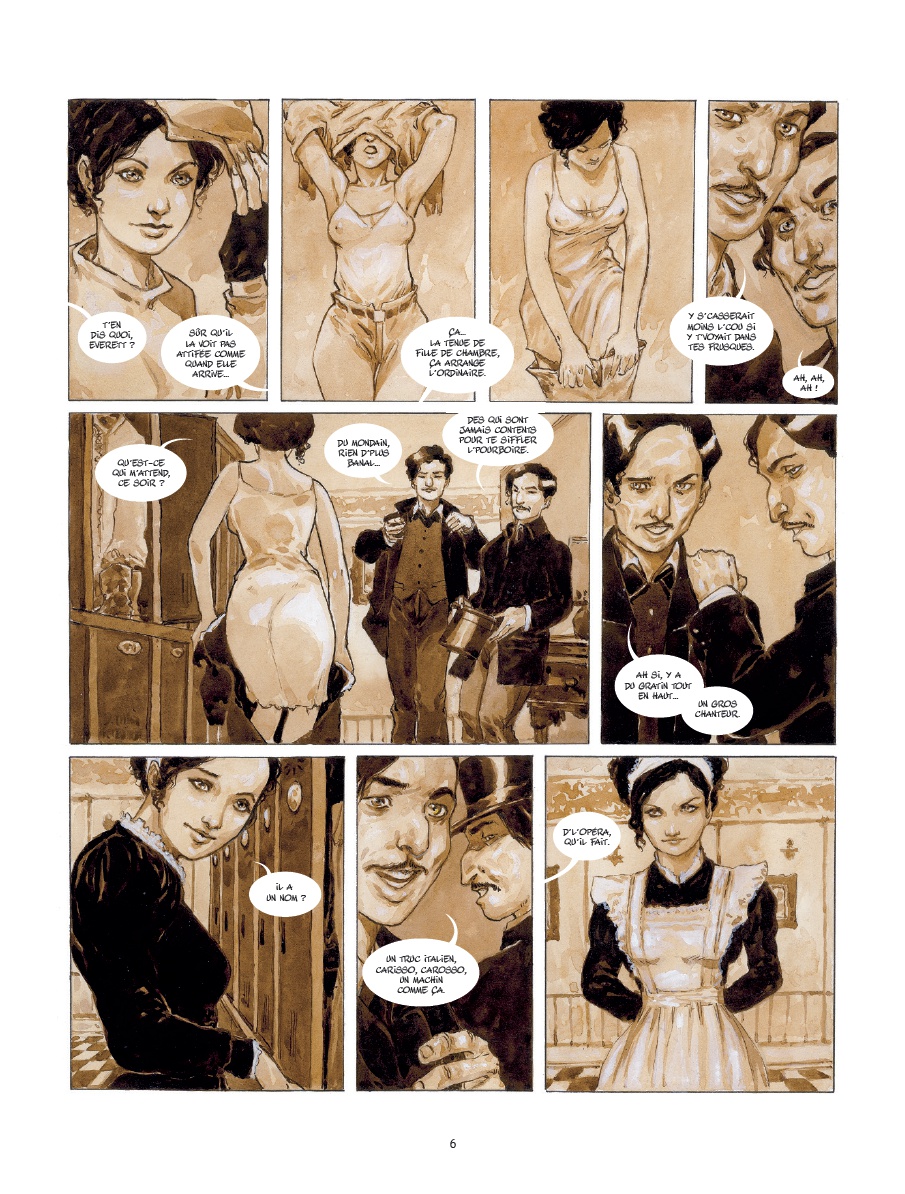L’auteur nous prévient dans sa préface que des personnages et des faits sont réels mais que le récit est totalement imaginé. Nous avons le même concept qui a prévalu sur le film catastrophe « Titanic » réalisé par James Cameroun à savoir une histoire brodée sur un fait historique précis. En guise de catastrophe, nous avons droit au tremblement de terre qui secoue San Francisco à 5h12 au matin du 18 avril 1906. L’épicentre se situait seulement à 12 km de la grande mégalopole de la côté Ouest : bref la fameuse faille de San Andreas. La magnitude a atteint 7,8 soit presque 8 ce qui en fait l’un des séismes les plus marquants. Il y eu près de 3000 morts et surtout d’immenses dégâts. Si on pouvait croire qu’une fois le tremblement de terre passé, cela serait fini, on se trompait assez lourdement car les conduites de gaz éventrés ont provoqué un immense incendie qui a ravagé la ville pendant trois jours durant. A noter également les pillages qui ont suivi cet événement majeur dans une ville qui était le fleuron de l’Ouest américain avec ses milliers d’émigrants notamment chinois. Le général Frédérick Funston chargé de protéger la ville ordonna aux militaires de tirer à vue sur les pilleurs faisant alors plus de 500 personnes blessées ou tuées. Pour en revenir à la BD, cela se concentre sur le passage d’un chanteur d’opéra italien qui a donné un récital le soir précédant le tremblement de terre ce qui est un fait avéré. Il s’agit du célèbre ténor Enrico Caruso qui doit faire passer un tableau de Klimt en toute illégalité pour servir la maîtresse du général. Ce dernier séjourne dans un grand hôtel. Il est également question d’une femme de chambre aux compétences étendues comme un peu dans l’affaire du Sofitel impliquant Dominique Strauss-Kahn, futur candidat à l’élection présidentielle. Bref, on suivra les aventures un peu rocambolesques de cette soubrette qui tente de protéger le tableau pour ne pas qu’il tombe dans les mains de la mafia italienne locale. Oui, les faits sont assez télescopés. Sur ce, il arrive le grand cataclysme qui est ne sorte de porte de sortie pour notre femme de charme. On n’y croit pas une seule seconde mais bon. Grâce à un dessin assez agréable tout en aquarelle, on suit tout de même avec un certain plaisir non dissimulé ce titre sous l’angle du divertissement pur. Il est vrai que cela part un peu dans tous les sens entre l’aspect artistique avec un retour sur la période de l’Antiquité lors d’une bataille qui fut réglé par une décapitation au sommet et les règlements de compte entre mafioso utilisant une vedette internationale. Il reste à découvrir le second tome qui clôturera cette œuvre.Le 01/05/2024 à 11:32:32