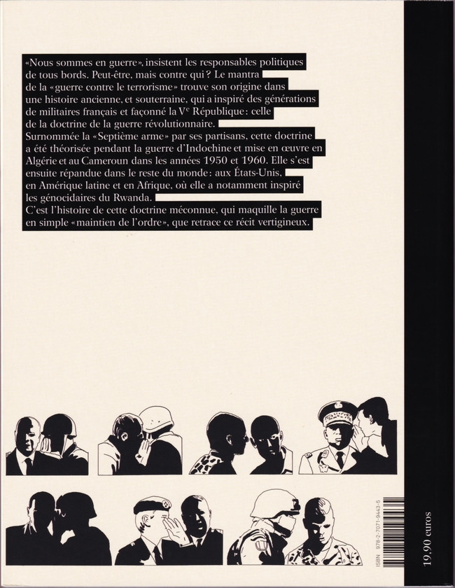 Ce scénario-catastrophe n'est pas un fantasme complotiste, il est le fruit d'une histoire qui appartient pleinement à la Ve République. Forgée dans la lutte anticoloniale, en Indochine et en Algérie, la doctrine de la guerre révolutionnaire, ou contre-insurrectionnelle, a inspiré des générations de militaires français. Elle a placé au centre de l'attention stratégique la propagande, le quadrillage du territoire, la surveillance des populations civiles ; elle a justifié le recours à la torture pour traquer et détruire l'« ennemi intérieur », et a provoqué des milliers de victimes. Autrement appelée la « Septième Arme », cette doctrine attribue aux militaires un rôle politique dans le maintien de l'ordre sur le territoire.