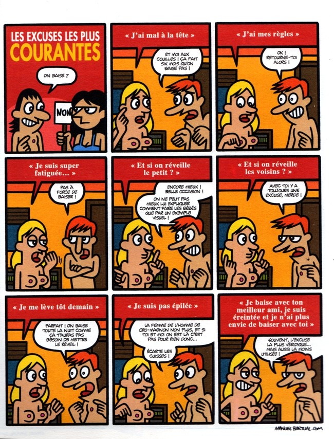 L'auteur espagnol tente de nous faire différentes approches humoristiques du sexe. Le style est résolument rétro, gras et appuyé et forcément trop coloré. Je n'ai pas aimé d'emblée. Après, il faut se forcer et cela devient très pénible et presque indigeste. Ce n'est pas mon style, ce n'est pas mon humour car c'est trop gras. Il n'y a point de grâce ou d'intérêt quelconque. Pour résumer en deux mots : c'est grivois et c'est crade. Maintenant, cela peut plaire car il faut de tout en ce monde. Je préfère tout de même le préciser: je ne suis pas du tout réfractaire sur ce sujet. Je suis d'ailleurs un grand fan de 50 nuances de Grey et même plus sombres.BDGest 2014 - Tous droits réservés