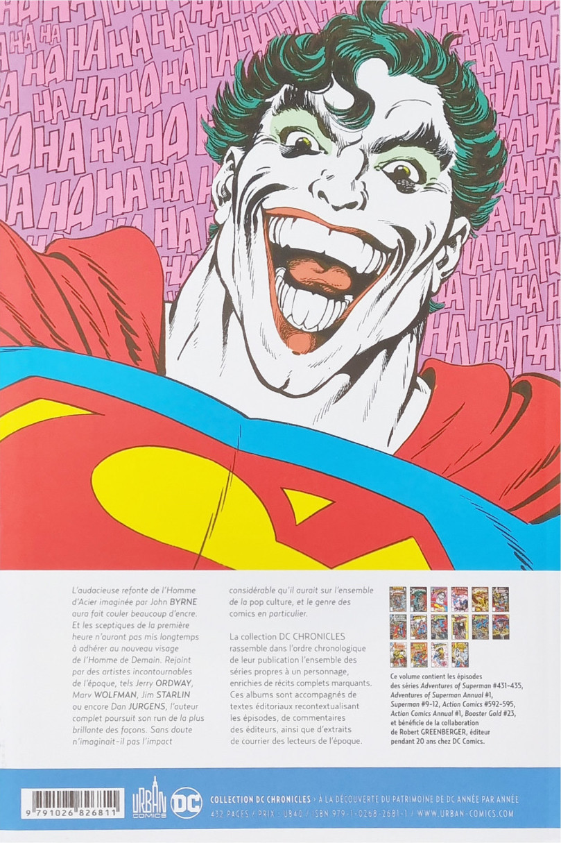 Résumé: L'audacieuse refonte de l'Homme d'Acier imaginée par John BYRNE aura fait couler beaucoup d'encre. Et les sceptiques de la première heure n'auront pas mis longtemps à adhérer au nouveau visage de l'Homme de Demain. Rejoint par des artistes incontournables de l'époque, tels Jerry ORDWAY, Marv WOLFMAN, Karl KESEL ou encore John BEATTY, l'auteur complet poursuit son run de la plus brillante des façons. Sans doute n'imaginait-il pas de l'impact considérable qu'il aurait sur l'ensemble de la pop culture, et le genre des comics en particulier.