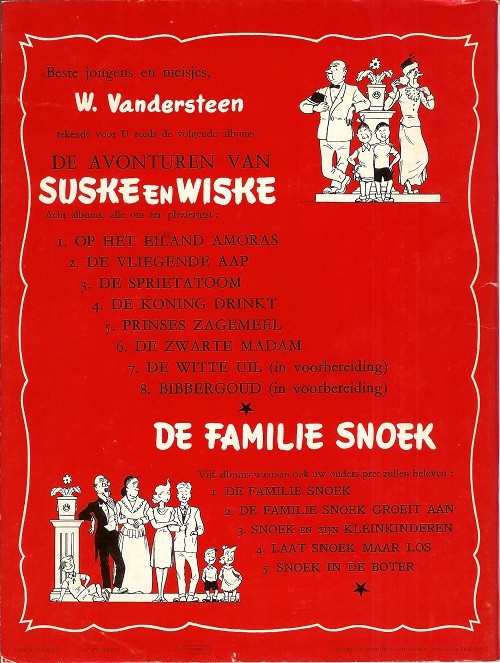 Info édition : Entre 1981 et 1984, les éditions Standaard Uitgeverij rééditèrent plusieurs anciens tomes des différentes séries de Willy Vandersteen dans leur format originel sous la collection "Strip Klassiek". "De zwarte madam", le numéro 140 dans la nouvelle numérotation, est paru le 01/06/1982 comme huitième tome de la collection. Album marqué 8 dans le coin supérieur gauche du 1er plat, dos piqué.
