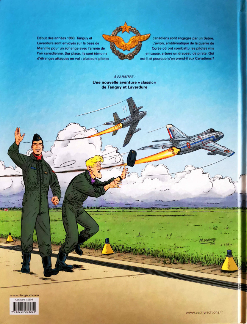 Résumé: Début des années 60, les deux plus célèbres pilotes de chasse français sont envoyés sur la base de Marville pour un échange avec l'armée de l'air canadienne. Sur place, ils sont témoins d'étranges attaques en vol. Plusieurs pilotes canadiens sont engagés par un Sabre, avion mythique de la guerre de Corée, arborant un drapeau de pirate !
