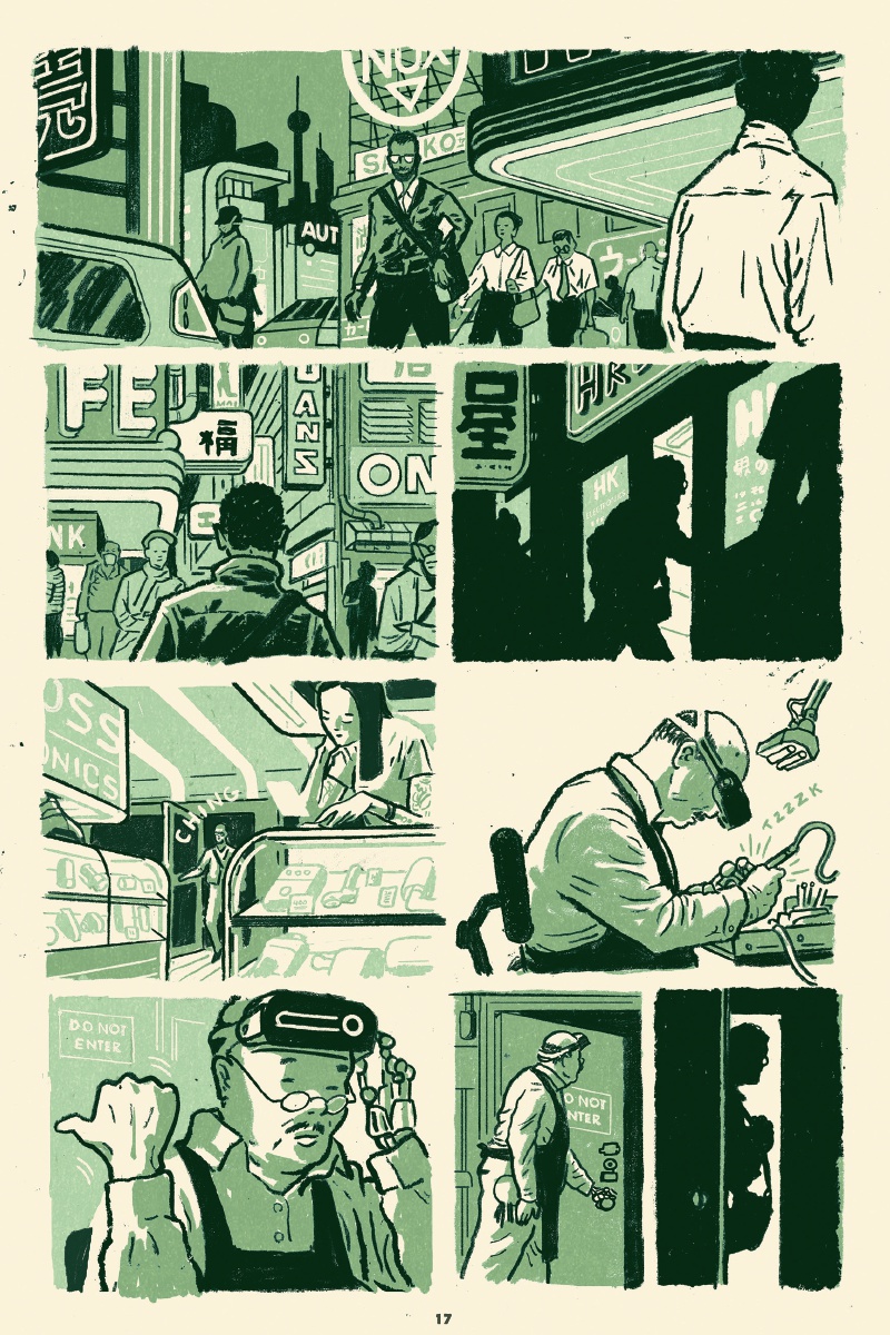 Face à un futur alarmant à tous les niveaux et derrière les gadgets façon Star Trek, les auteurs ont néanmoins évité la surenchère et ressorti des vieux discours politiques et les non moins anciennes méthodes propres à la désobéissance civile. La traditionnelle lutte de David l’ouvrier contre Goliath le patron est évidemment inégale et inutile d’être devin pour deviner le résultat des courses. Heureusement, le scénariste a eu aussi l’intelligence de s’intéresser aux bordures de ce conflit. Ainsi, une fois retombée les poussières des affrontements, la lumière se braque sur le couple formé de Véra et Paul : le temps des concessions ou d’un accord bénéfique à toutes et à tous ne serait-il pas possible ? Dilemme, trahison des idéaux, choix par dépit ou répit avant la prochaine étape ? Un monde en noir et blanc, ou en niveau de gris ? La pensée de Hughto ne fait aucun doute, mais la profondeur de son scénario prouve bien qu’il a exploré toutes les facettes de son sujet. Sans éviter une dose de manichéisme et d’angélisme, il offre album finement écrit, sincère et très cohérent.