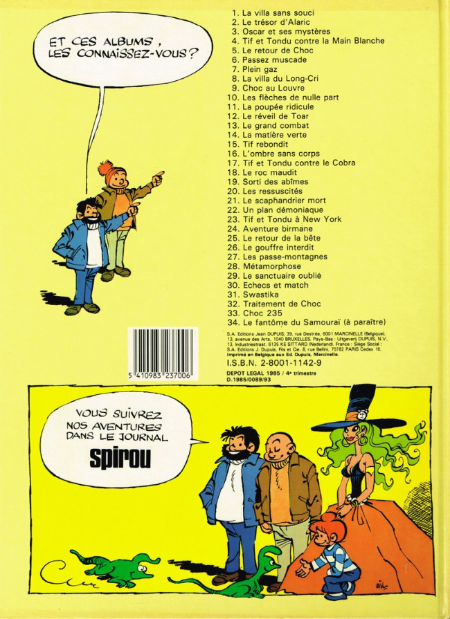 Un épisode très jet set pour Tif et Tondu... On sent que Desberg tente de moderniser la série et le moins que l'on puisse dire c'est qu'il y va au forceps. Parfois cela frise le ridicule : voir Tif en séducteur paraît quand même bien peu crédible... Concernant le scénario, on utilise à nouveau le personnage de Monsieur Choc, après son retour effectué lors du précédent album. Desberg tente de créer une ambiance à la James Bond, en reprenant certains des thèmes récurrents de la saga de l'agent 007 : la femme fatale, une histoire embrouillée de trafic d'uranium, une mini-guérilla à la fin de l'album qui se termine dans un hangar sous-marin. Bon, vous l'aurez compris, on a parfois dû mal à retrouver l'ambiance policière et fantastique des anciens Tif et Tondu... Au dessin, Will s'applique sur les décors balnéaires et les jolies filles, mais on a l'impression qu'il bâcle un peu plus qu'avant ses personnages. Une originalité cependant : l'apparition de Tondu sans barbe (ça vaut le détour). Un album un peu décevant qui fera dire à certains que Desberg n'était pas le meilleur scénariste de la série...Le 09/12/2021 à 23:27:20