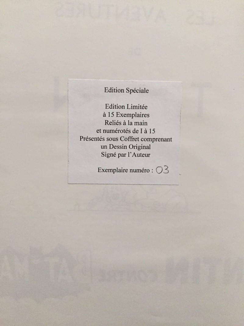 Résumé: La dernière photo représente le Tiré à part avec le justificatif du tirage, ici le 03 sur 15. Aussi un justificatif du tirage juste après la première page de garde.
