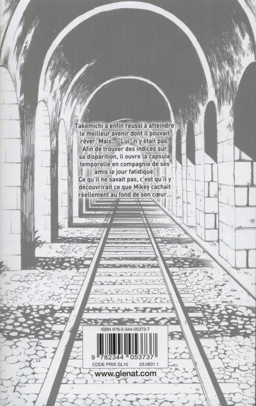 Résumé: Takemichi a enfin réussi à atteindre le meilleur avenir dont il pouvait rêver. Mais... Lui n'y était pas. Afin de trouver des indices sur sa disparition, il ouvre la capsule temporelle en compagnie de ses amis le jour fatidique. Ce qu'il ne savait pas, c'est qu'il y découvrirait ce que Mikey cachait réellement au fond de son coeur...