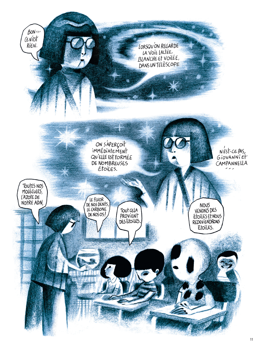 Résumé: Le soir de la Fête de la Voie Lactée, en butte aux moqueries de ses camarades d'école, Giovanni part s'isoler sur une colline et s'assoupit. A son réveil, un train à vapeur en provenance du Cosmos se pose à ses côtés... Curieux, il embarque sans se douter qu'il va visiter les confins de la galaxie, en compagnie de son ami Campannella...