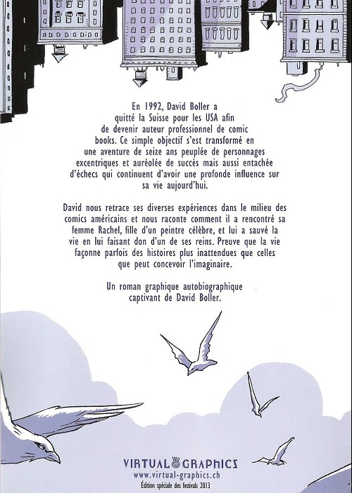 Résumé: En 1992, David Boller a quitté la Suisse pour les USA afin de devenir auteur professionnel de comic books. Ce simple objectif s'est transformé en une aventure de seize ans peuplée de personnages excentriques et auréolée de succès mais aussi entachée d'échecs qui continuent d'avoir une profonde influence sur sa vie d'aujourd'hui.