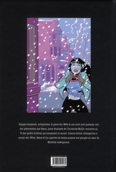 Résumé: Voyages temporels, ectoplasmes et génie des Mille et Une Nuits sont quelques-uns des phénomènes que Veena, jeune étudiante de l'Université McGill, rencontre au fil des quatre histoires qui composent ce recueil. Veena et les spectres du temps est une BD de science-fiction introspective à saveur des années 1950.