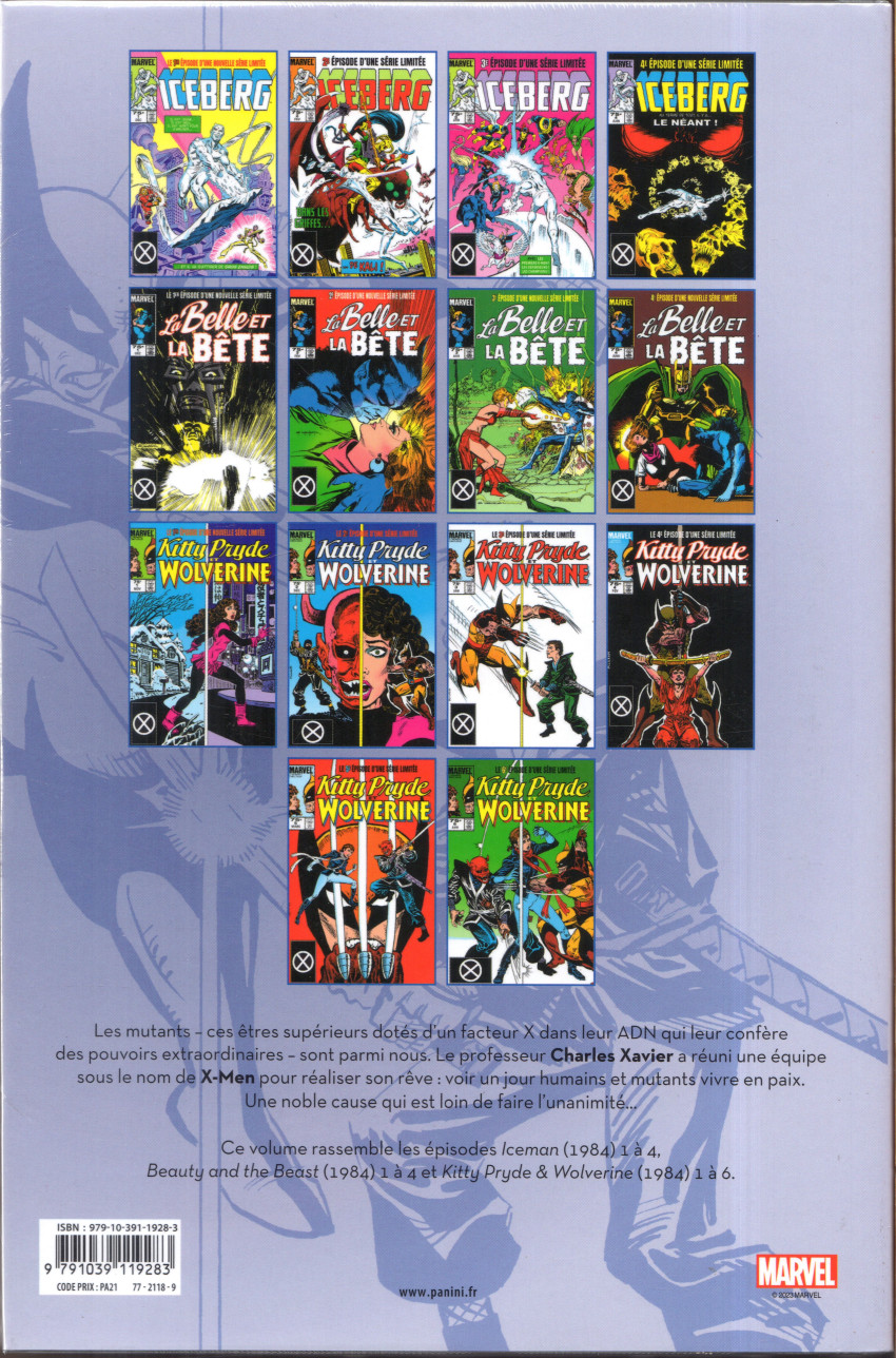 Résumé: Entre la fin 1984 et 1985, trois mini-séries sont publiées et mettent en scène des mutants comme Iceberg (par DeMatteis/Kupperberg), le Fauve et Dazzler (par Nocenti/Perlin) ainsi que Kitty Pryde et Wolverine (par Claremont/Milgrom). Des œuvres que nous publions enfin en INTÉGRALE.