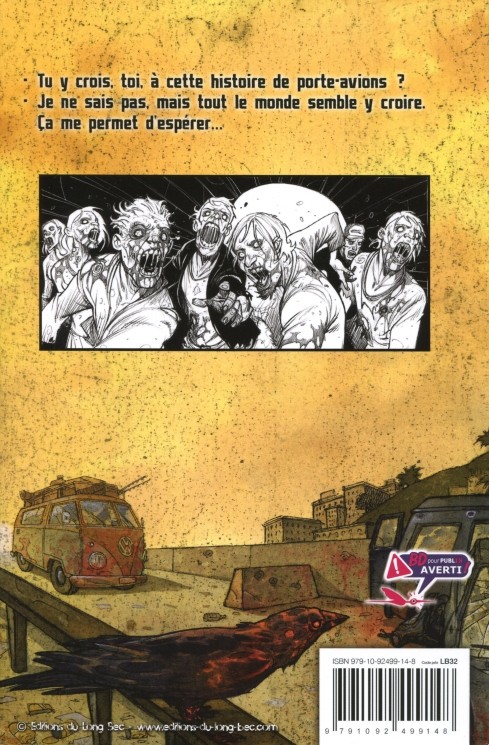 Résumé: Nous retrouvons les deux personnages principaux du premier album, Mary et Franck, quelque part dans le nord de l’Italie, où leur ballon dirigeable s’est posé… Par ailleurs, à Marseille, nous découvrons de nouveaux héros, Laura et Fabio. Tous sont en proie à tout un continent envahi par les zombies, où la seule planche de salut semble être la voie maritime…. Mais avant d’en arriver là, nos personnages vont être confrontés aux bassesse de l’âme humaine, surtout en ces temps plus que troublés : les uns vont notamment rencontrer un mystérieux seigneur complètement mégalo, tandis que les autres croiseront la route des membres du laboratoire pharmaceutique de sinistre mémoire, à l’origine de l’épidémie de morts-vivants … Tout cela dans un cocktail explosif mêlant action et fantastique, où le trait alerte de Giuseppe Manunta fait merveille !