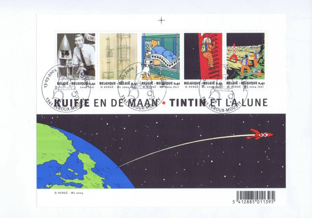 Info édition : Édité par le Centre Belge de la Bande Dessinée, La Poste belge et les éditions Moulinsart pour le 50e anniversaire de l’album des Aventures de Tintin « On a marché sur la Lune » d’Hergé, et plus particulièrement à l'occasion de l'émission d'une série de cinq timbres et un feuillet commémorant cette fabuleuse aventure et le 75e anniversaire de la création de Tintin et Milou. L'album comprend tous les dessins initiaux donc inédits, parus dans le journal de Tintin mais corrigés pour la parution de la version de l’album.