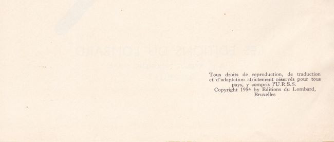 Info édition : Première édition à la photo. Pas de logo éditeur. En 2 tomes (4e). Dernier titre indiqué au 4e plat : "L'Affaire du collier". En page 2 : Copyright 1954 by Editions du Lombard, Bruxelles (voir Autre image). Titre en gras au dos de l'album numéroté 1.