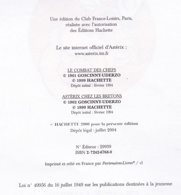 Info édition : Couv : Disparition de la mention Album Double + nouvelle maquette du texte + tour blanc + chouette au-dessus de Panoramix / p2 noté dépôt initial 02/1994 pour les 2 albums + DL 07/2004 + ISBN 2-7242-6768-9 / C4 : Disparition de la mention Album Double + nouvelle maquette du texte + tour blanc + dessin recadré