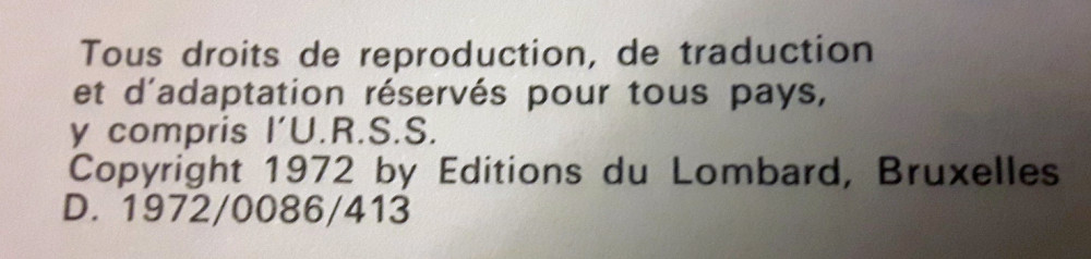 Info édition : Couverture : "Editions du Lombard" sans logo sur fond rouge,