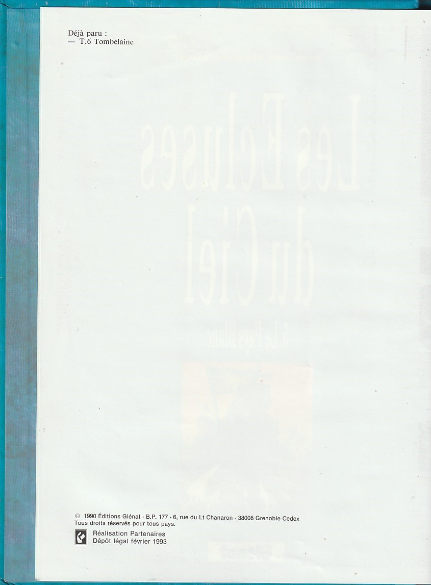 Info édition : Logo Glénat sans éditions (mais tâche sur le n en impression). inscrit en haut de page 2 : "Déjà paru : -T.6 Tombelaine".