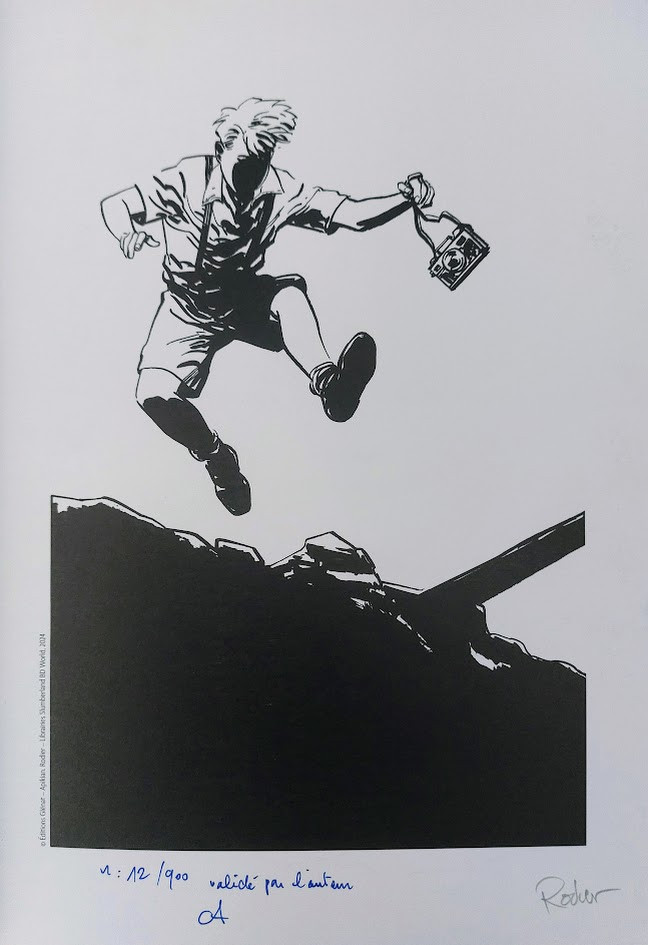 Grosse sortie de ce tunnel éditorial annuel chez Glénat, la 3eme kamera a été teasé depuis plusieurs mois avec différentes variantes de la (très réussie) couverture, prélude aux trois éditions en vente (dont une NB avec la désormais malheureuse habitude de doubler le tarif pour les éditions sans couleur...). Communiqué comme l'album des auteurs des (excellents) Ballade du soldat Odawaa et La Bombe, ce one-shot doté d'un très fourni livret historique est plutôt à mettre en parallèle avec le tout aussi excellent Seules à Berlin, dont il partage la noirceur. Car il y aune petite confusion dans cette BD qui traite bien plus du chaos humain dans le Berlin de l'immédiat après-guerre que de cette quête d'archives historiques. Il vaut donc mieux être prévenu pour éviter une déception. L'intrigue tortueuse menée par Cedric Apikian garde bien pour fil rouge l'un des photographe des PK mais ce qui intéresse les auteurs reste la chronique noire d'un chaos où seule la survie compte et où toute morale a disparu alors que subsistent quelques vestiges humains revanchards du glorieux Reich. L'aspect documentaire sera excellement fourni par les pages historiques en fin d'album mais plus sur le modèle d'un bonus DVD que véritablement structurant de l'histoire. Cette dernière s'attache plus à l'affrontement feutré entre les services de renseignement militaire affairés à capturer les milliers d'anciens nazis disparus dans la débâcle et un ancien officier qui n'a pas dit son dernier mot et utilise le tas de gravât qu'est Berlin pour mener ses petites combines et assassiner un soldat par-ci par-là. Et Berlin est peut être le personnage principal de l'album, ou du moins ses occupants, pauvres âmes qui se remettent à peine de la fin d'un monde. Le dessin assez classique de Denis Rodier a toute sa force en posant ses encrages profonds dans des décors redondants qui n'aident pas à habiller l'image mais que le dessinateur, plein de professionnalisme, sait varier dans sa mise en scène en usant de cadrages très larges voir de pleines pages au découpage déconstruit. C'est ainsi une véritable prouesse graphique que de parvenir à donner une vraie dimension graphique à un album au contexte très pauvre en possibilités. Aidé par le script de son scénariste, le dessinateur québécois développe joliment ses personnages de soldats et de rescapés en aérant un peu la pesanteur du propos. Les limites de son trait rendent en revanche parfois compliquée la distinction de certains personnages dans une histoire où l'identité du photographe est un des mystère qui perdure jusqu'à la dernière page. Surprenant tout au long de la lecture, La 3eme Kamera se trouve plutôt mal titré sur cette confusion originale. N'hésitant pas dans la noirceur, le scénario sait apporter des moments de fraicheur en suivant ces soldats joviaux pris dans une menace qu'ils ne perçoivent pas. Plutôt nihiliste au final, l'album est une excellente description des conséquences immédiates de la guerre pour les allemands et vous permettra de vous documenter sur le thème des archives de guerre que les auteurs n'auront malheureusement pas complètement réussi à intégrer à leur histoire. Lire sur le blog: https://etagereimaginaire.wordpress.com/2024/11/11/la-3eme-kamera/Le 23/10/2024 à 22:19:13