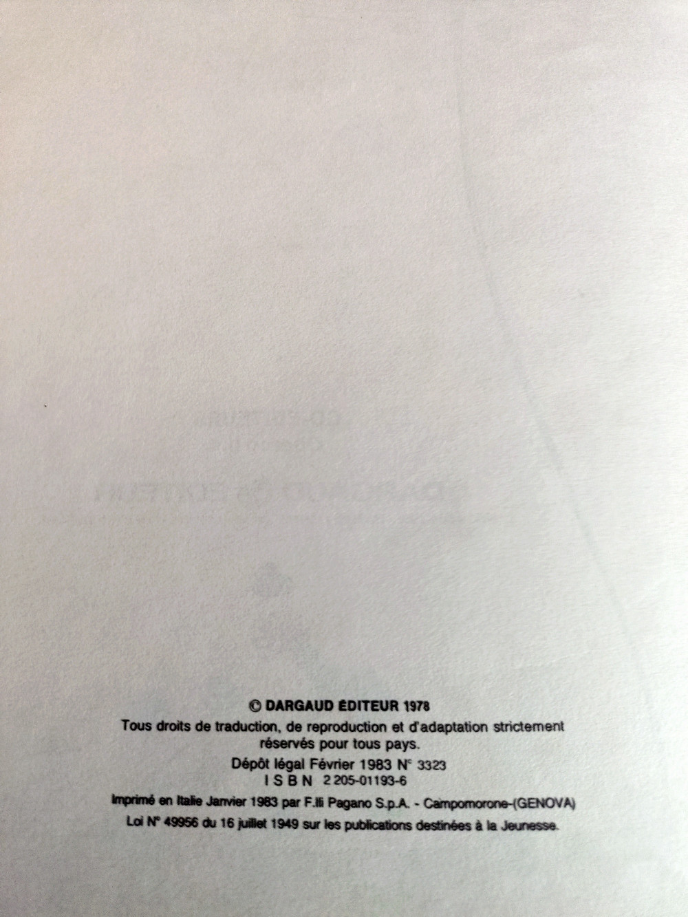 - Info édition : précisé en 2ème page: DL 02/1983 n°3323