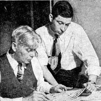 Dirks, JohnJohn Dirks (1917-2010) est un auteur de bande dessinée américain spécialisé dans le comic strip humoristique. Fils de Rudolph Dirks, créateur de Pim Pam Poum en 1897, John Dirks assiste son père à partir de 1945 sur "The Captain and the Kids", qu'il assure seul de 1958 à l'arrêt de la série par United Feature Syndicate en 1979. Il se consacre alors à la sculpture. Photo : Rudolph et John Dirks (debout)