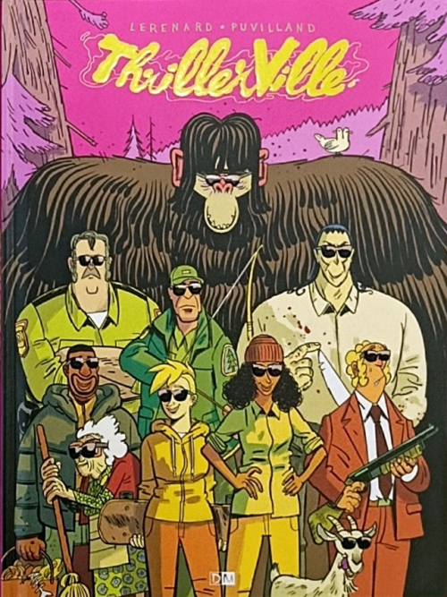Récit choral à la limite des genres, Thrillerville est le premier scénario de Lerenard. Quelque part entre les frères Cohen et Guillaume Griffon, il anime une distribution haute en couleurs dans une sorte de course à l’échalote multicéphale particulièrement truculente. Des flics de campagne bourrus aux jeunes femmes dynamiques, en passant par l’épicière hors d’âge, sans oublier une ou deux créatures légendaires et, évidemment, quelques secrets passés et présents qui ressurgissent, les stéréotypes ne manquent pas. Heureusement, le néo-scénariste ne s’est pas limité aux apparences et au pastiche. Intercalés dans la trame principale, des retours en arrière très bien construits apportent précision et contexte aux différentes force en présence. Ces petites touches enrichissent la psychologie des personnages et amènent de nouvelles pistes ou significations aux événements. L’ensemble est emballé par un humour omniprésent et essaimé de références et clins d’œil «pop-culturesques» savoureux. Il en résulte un album tonique, un peu longuet peut-être, mais toujours fluide et bourré d’une énergie contagieuse.