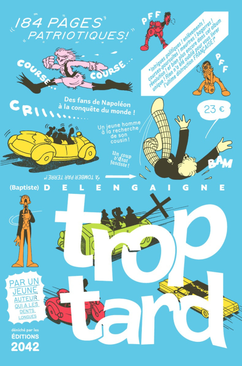 Nouveau venu dans le paysage BD, Baptiste Delengaigne propose une satire politique très contemporaine et terriblement rétro à la fois. En résumé : un leader charismatique se rêvant Napoléon manigance dans le but d’instaurer un régime fasciste en France. Afin de faire passer son message, il a décidé d’offrir un buste de l’Empereur à tous les foyers de l’Hexagone. Problème, la fabrication de ces sculptures nécessite beaucoup de bronze. Pour arriver à ses fins, il envoie ses sbires piller les cimetières et rafler tout le métal possible. Le cousin Claudine est intégré à une des équipes. Par contre, son allure un peu efféminée ne plaît pas à tous. Ici, c’est une affaire de gars, avec des bretelles, des moustaches et le coude léger. Pas de place pour les femmelettes !