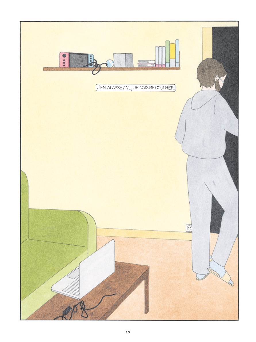 En ligne, manuels de drague et modes d'emploi dégradants le confortent dans son ressentiment ; il commence à fréquenter d'autres incels, embrasse leurs discours virilistes. Depuis sa fenêtre, il regarde avec un dégoût grandissant la boutique qui se trouve de l'autre côté de la rue ; à l'intérieur, quatre femmes discutent en travaillant.