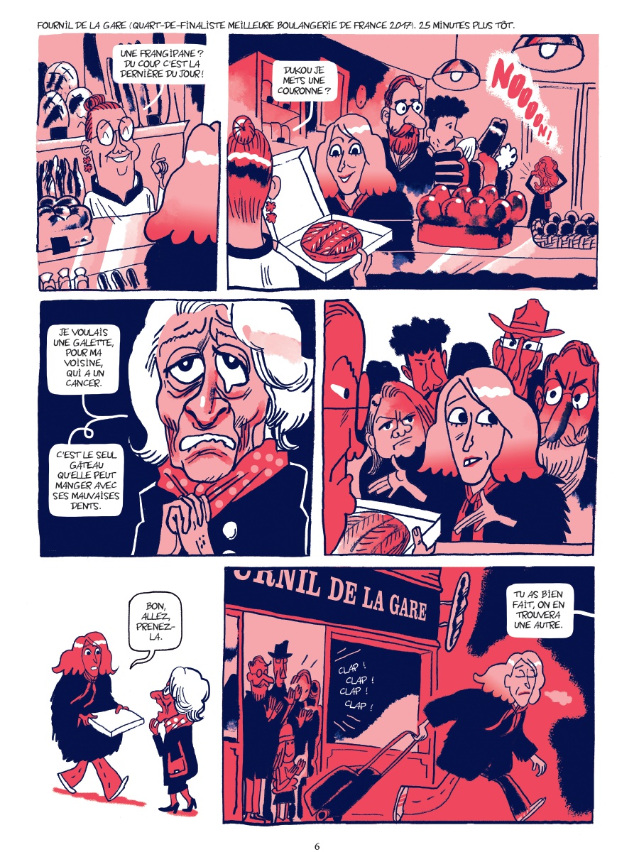 Une fois par an, Jérôme et sa soeur Adèle se retrouvent en famille dans la maison bordelaise de leur vieux père pour manger la galette des Rois. Cette année encore, chacun traîne des pieds pour se fader un repas de fête qui n'a plus rien de festif. Cette fois, l'ambiance est particulièrement tendue : les grèves sociales échauffent les esprits, le patriarche de la maison est frappé de mutisme et la pénurie de frangipane continue de sévir (un manque d'amandes dû à la guerre en Ukraine). Pour Jérôme, on ne déroge pas aux traditions ! Le quinquagénaire, entrepreneur en crise, et sa soeur, militante en herbe, se lancent dans une course effrénée à la galette en plein mouvement social. Mais entre les extrêmes qui tractent au marché le matin et les CRS qui chargent les manifestants l'après-midi, difficile de trouver une boulangerie ouverte. Ce qui commence comme un simple pari se transforme bientôt en odyssée absurde, drôle et poignante. Entre désaccords politiques, révélations familiales et gaps générationnels, la frangipane cristallise les tensions de cette famille au bord de la crise de nerfs. À moins que leur père n'ait quelque chose à dire...
