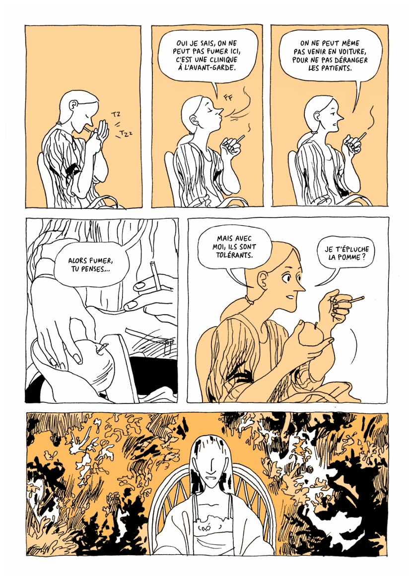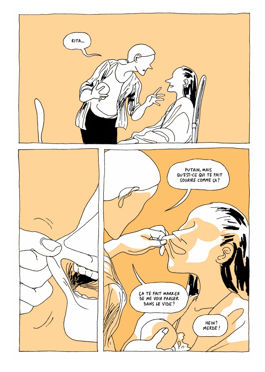 R ita Nocenti est folle. C'est du moins ce que disent ceux qui la connaissent et le dossier médical de la clinique psychiatrique où elle est soignée. Elle a toujours été étrange, mais maintenant elle est catatonique : elle ne parle pas, bouge peu, et elle sourit tout le temps. Les médecins ignorent la cause de son trouble et ne savent pas quel traitement lui faire suivre. Son seul lien avec le monde est sa soeur Francesca, qui la soutient, même si leur relation a toujours été compliquée. Un jour, Francesca se coupe en épluchant une pomme, et à la vue du sang, Rita cesse de sourire : cet épisode marque le début d'une série d'événements et de révélations aux rebondissements inattendus. Comme le dit Francesca, « le symptôme n'est que le résumé d'une histoire » : pour découvrir l'origine de cette maladie sans nom, il faudra creuser profondément. Les deux soeurs doivent retracer leurs expériences dans une série de flashbacks douloureux et éclairants, à la recherche d'une racine commune, d'un traumatisme qui, d'un seul coup, les a à la fois unies et séparées à jamais. Dans ce premier roman graphique d'une maturité surprenante et plusieurs fois primé, l'italienne Iris Biasio reconstruit le château de cartes d'une histoire familiale tortueuse, intense et débordante d'humanité