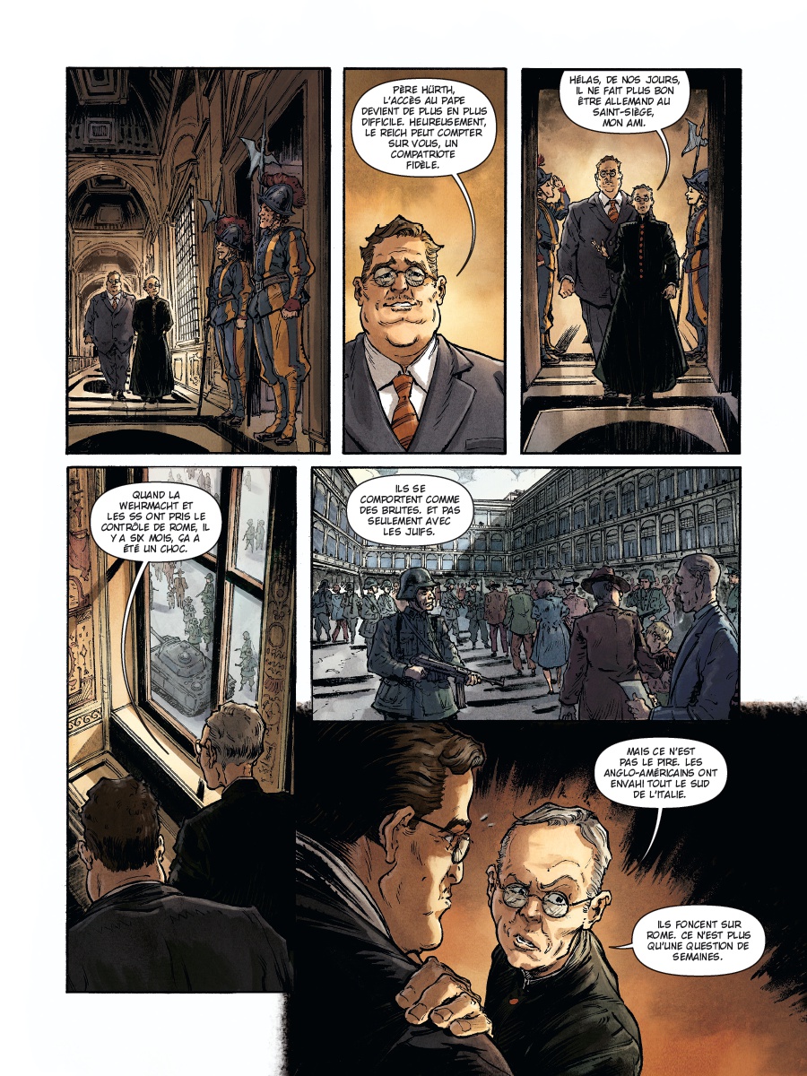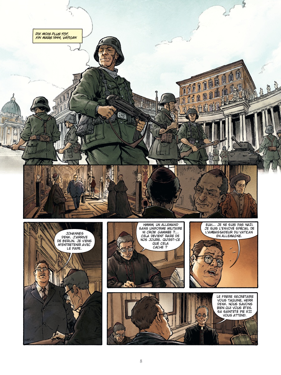Basé sur des faits réels et des sources historiques rares issues des archives allemandes et russes (Neuhaus a été capturé par l'Armée rouge à la fin de la guerre), le nouveau diptyque du journaliste Jean-Christophe Brisard nous plonge au coeur des intrigues politiques mêlant l'Allemagne nazie et le Vatican. Aux côtés de Michael Malatini et de son dessin percutant, l'auteur nous offre un thriller historique passionnant, entre fiction, espionnage et drame religieux, qui interroge le rôle de l'Église durant la Seconde Guerre mondiale.