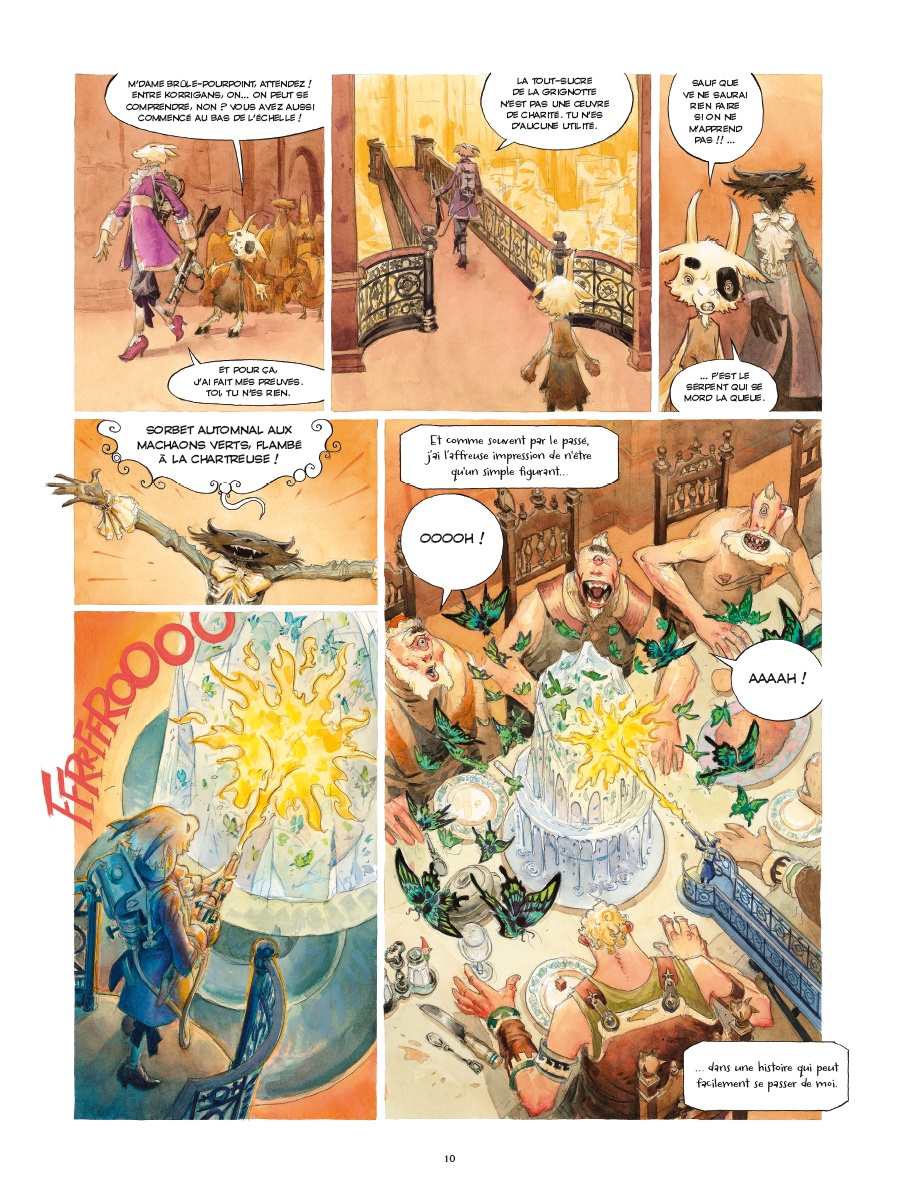 L e jour où Maître Grignotte propose à Brèche-dent un contrat, le petit korrigan est aux anges : en intégrant la brigade Tout-Sucre il pourrait se forger un bien avenir meilleur que celui de plongeur à la Cuisine des Ogres. Mais le prix à payer en contrepartie est élevé car on lui demande de trahir son amie, Trois-fois-morte, dont les talents de cuisinière sont jalousés. Si Brèche-dent refuse de lui voler l'une de ses fameuses recettes, les représailles seront terribles ! Courageux et loyal, Brèche-dent choisi plutôt l'exil : c'est le début d'une véritable cavale et de trépidantes (més)aventures.