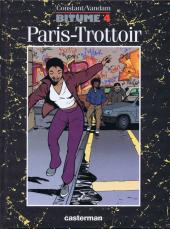Bitume" c'est la communication, les rencontres, les gens tout simplement. Ce sont leurs cultures, leurs espoirs, leurs drames qui passent... Celui qui s'arrête et celui qui quitte, ceux qui ne seront plus tout à fait comme avant. "Bitume" raconte des histoires de gens du bout de la rue et du bout du monde. (c) Casterman